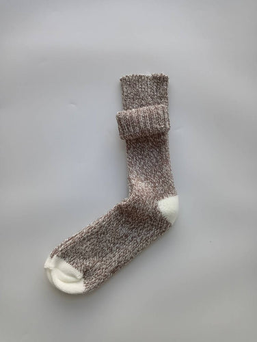 Kırçıllı Kahve Beyaz Pamuk Çorap